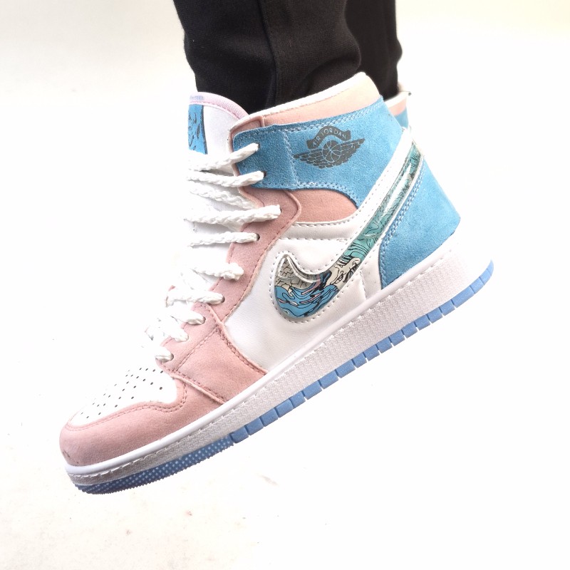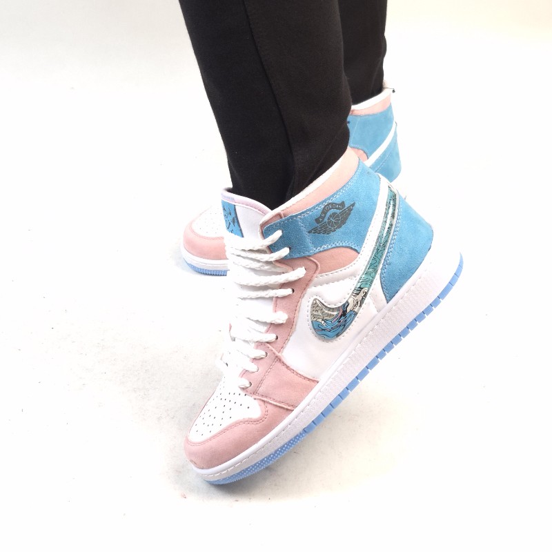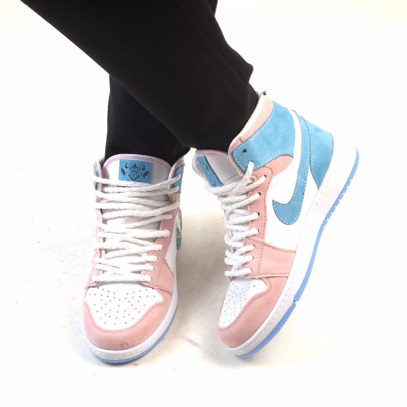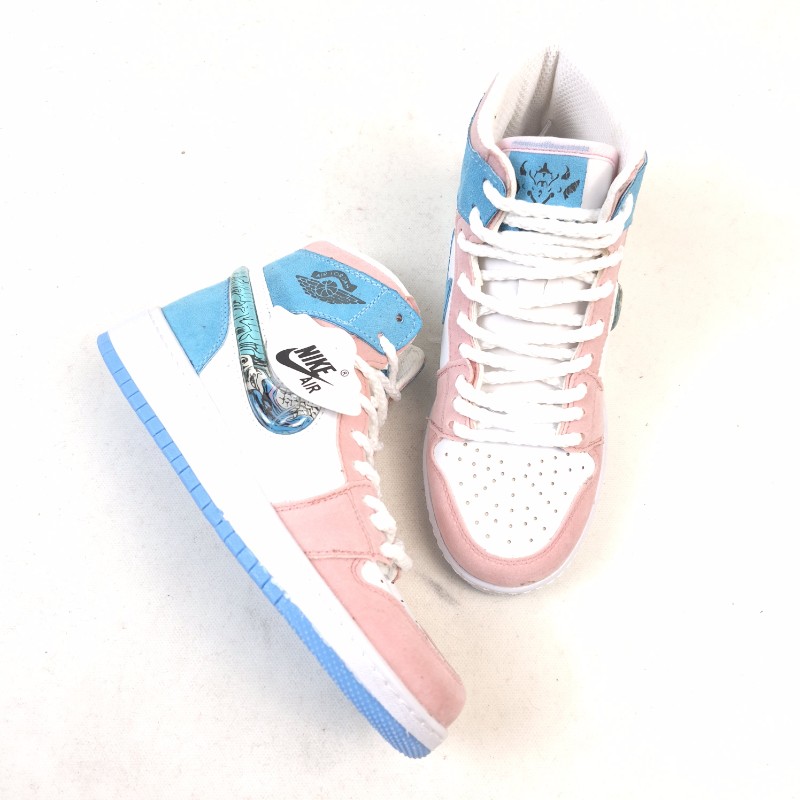 کفش اسپرت زنانه و دخترانه نایک جردن ساق دار دراگون کیفیت مستر رنگ آبی صورتی