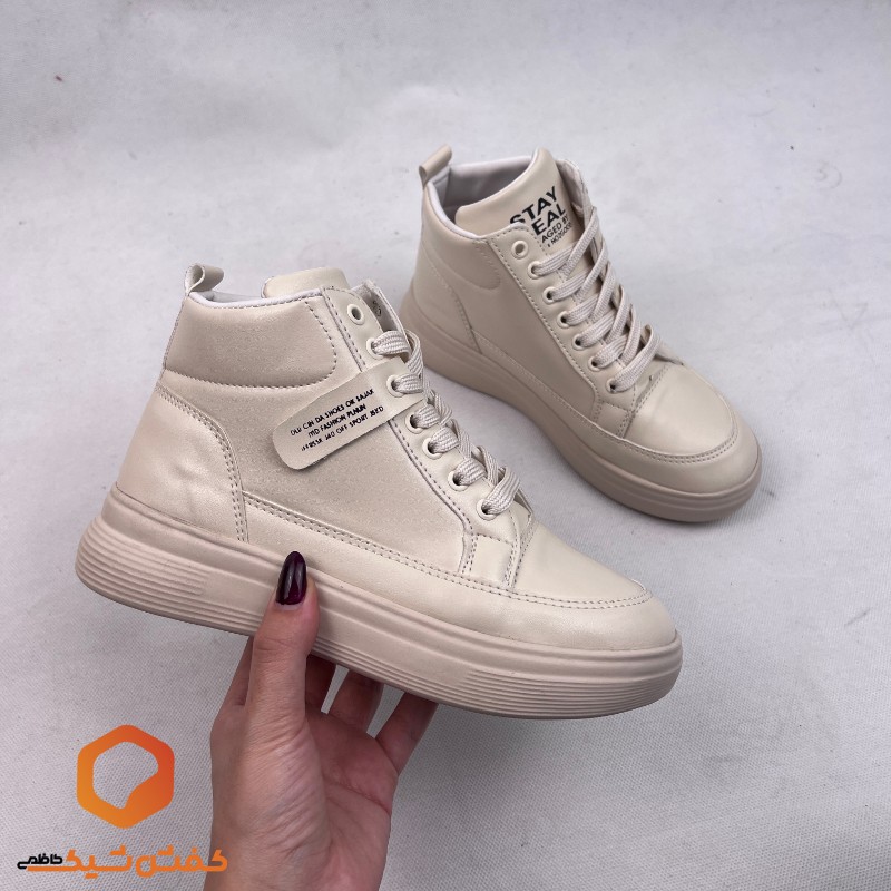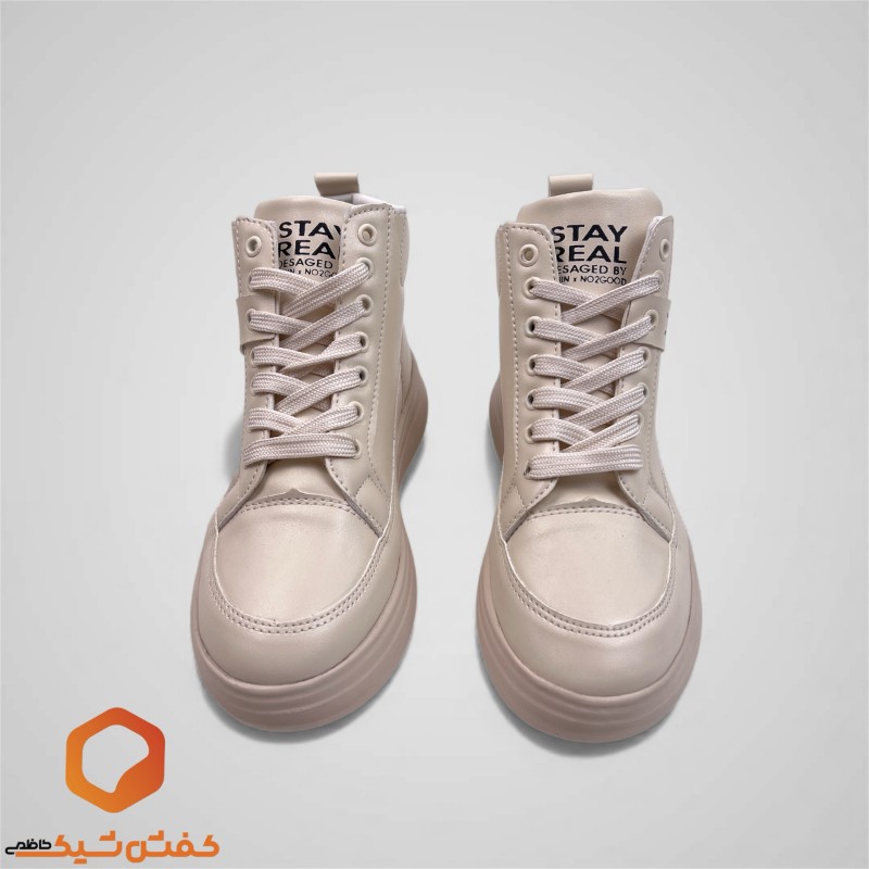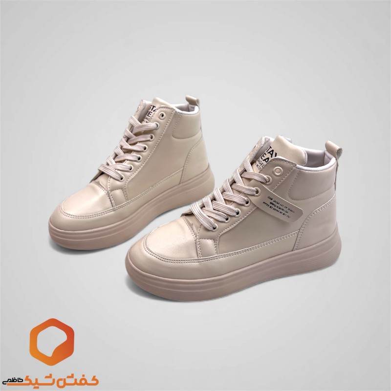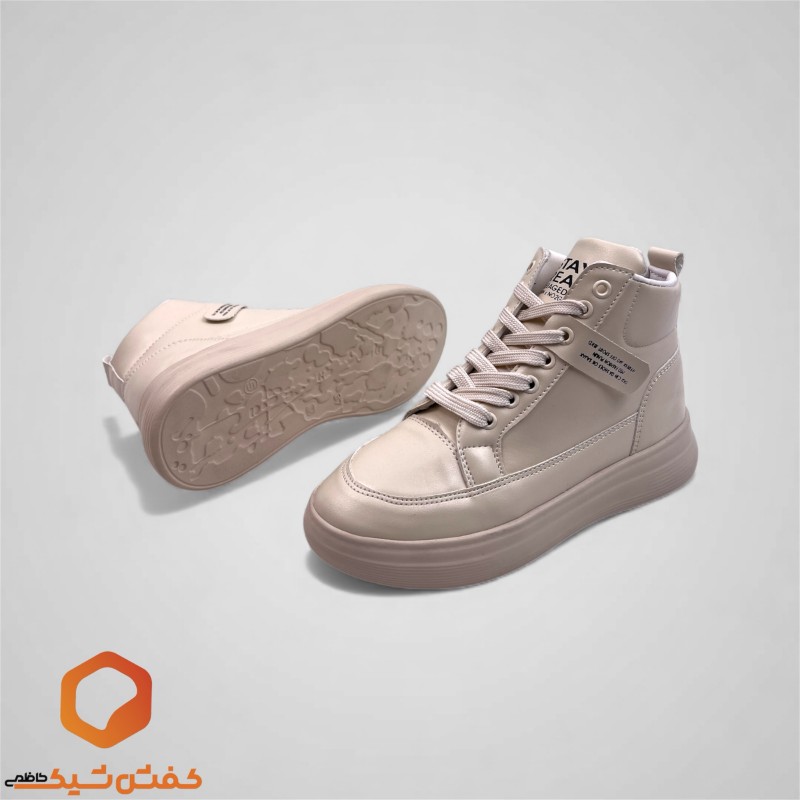 کفش اسپرت زنانه ساقدار ساده کرمی با ارسال رایگان